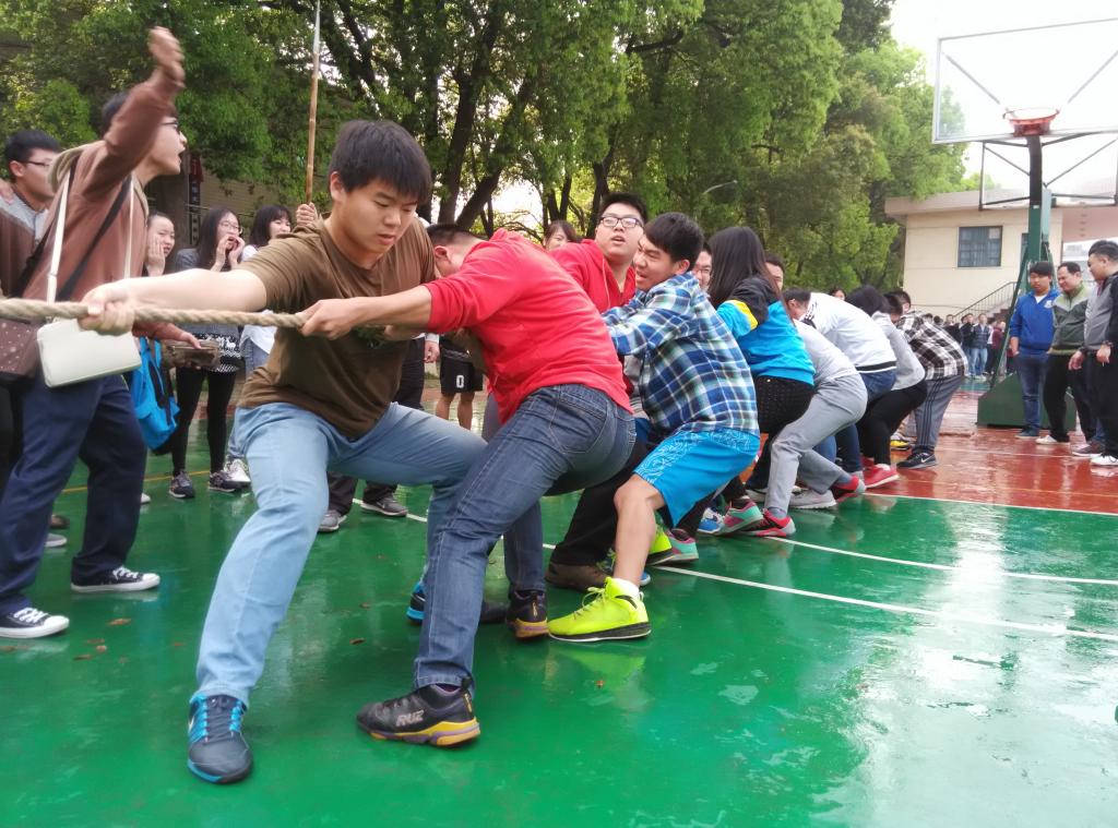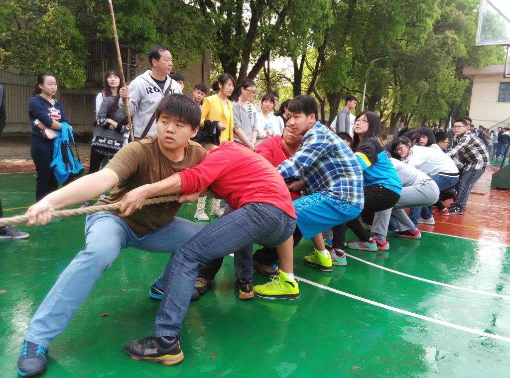 伟德师生齐上阵,怀着必胜的信心,摩拳擦掌的准备着。第一场比赛对阵文法学院,队员们齐心协力,一鼓作气,在啦啦队员们的大声助威下,参赛的老师和同学气势大涨,连连取得胜利,最后晋级第二轮比赛。休息10分钟之后,第二场与城市建设学院的比赛拉开了帷幕。随着一声哨响,在啦啦队的响亮的呐喊声中,象征着胜利的红绳不断地向我们这边移动,最终我们获得第一轮胜利,第二轮交换场地后,受场地的影响,选手们发挥失常,以致最后遗憾的输掉了比赛。