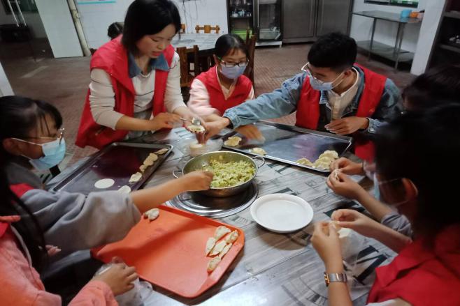 活动开展前,根据活动策划,同学们认真的进行了人员分组以及任务分配。到达老年公寓后,积极投身到志愿服务中,有的打扫地面、有的擦净电视柜的灰尘、有的操着一口流利且地道的衡阳方言与爷爷奶奶们唠着家常。随后,高分子材料工程184班的郭镕硕同学带领着学弟学妹们在厨房中包起了饺子,让爷爷奶奶们感受到家的温暖,品尝家的味道。在包饺子方面同学们毫不掩饰自己的才能,纷纷挽袖动手,并邀请爷爷奶奶们一同参与。志愿者、爷爷奶奶们和厨房的工作人员齐心同力,在锅碗瓢盆的碰撞声中,有说有笑,其乐融融。此次志愿活动得到了爷爷奶奶们的高度赞扬,并表示看到同学们的到来就像看到了自己的孙辈一样开心,同学们也随之表示在之后的课余时间里,会经常过来看望他们。