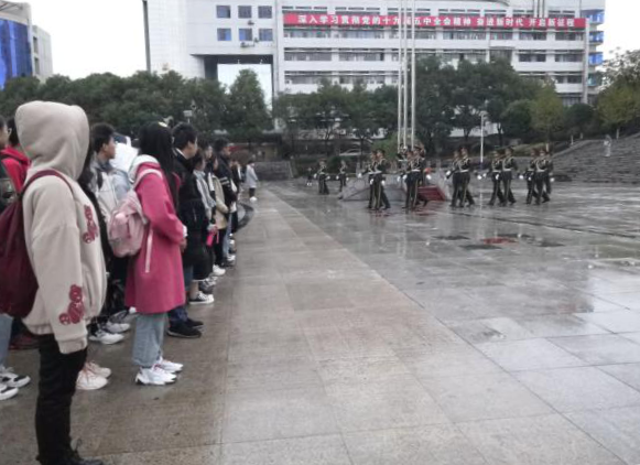 7时整,在陈楠老师宣布升旗仪式正式开始后,校国旗护卫队队员护着鲜艳的五星红旗、迈着铿锵有力的步伐走向国旗台。伴随着庄严的国歌声,同学们一边唱着国歌,一边注目着国旗缓缓升起。升旗仪式结束后,高分子材料191班董铭同学做国旗下的演讲。在演讲中,董铭表示作为新时代大学生,我们要肩负起时代责任和历史使命,与祖国同呼吸共命运,面对前方未知的挑战,应迎难而上,越战越勇,不负党的期望、人民的期待、民族的重托。学院党委副书记余晓秋老师在讲话中表示:让我们牢记习近平总书记对新时代中国青年提出的6点要求;“树立远大理想,热爱伟大祖国,担当时代责任,勇于砥砺奋斗,练就过硬本领,锤炼品德修为。”把责任担在肩上,义无反顾。以饱满的热情和昂扬的斗志谱写属于你们的崭新篇章!