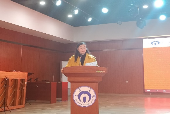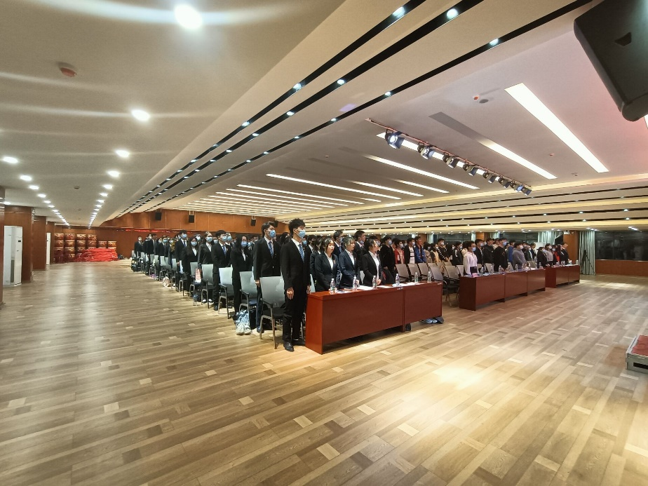 大会第九项,院学工室主任陈楠老师宣读任命文件并为新一届的学生干部颁发聘书。随后,第二十一届团委、学生会代表石峻伟同学宣读倡议书,石峻伟同学表示:“作为青年一代学子,我们要继续弘扬光荣传统,永远把伟大的建党精神继承下去,发杨光大。要实学实干,脚踏实地,在攀登知识高峰中追求卓越,在肩负时代重任时行胜于言,在真刀真枪的实干中成就一番事业。”最后,余晓秋副书记在闭幕词中寄语新一届的学生干部希望他们圆满完成自己的光荣使命,创造新的辉煌,开创更美好的新局面。大会在全体奏唱中国共青团团歌中圆满落幕。