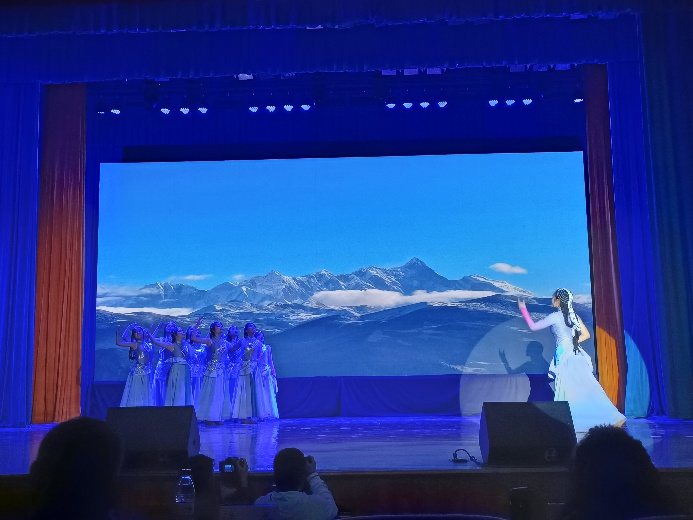“灵舞风华,创天地之妙;祈禳民福,沐雪域圣泉”。是的,这支群舞以“沐浴节”为创作背景而生,而“沐浴节”正是藏族传统民俗传统节日,有“祛除晦气”“祈禳纳福”的寓意。而这里,她们,以舞蹈,描绘了一群藏族少女沐浴在高原湖畔的情景。