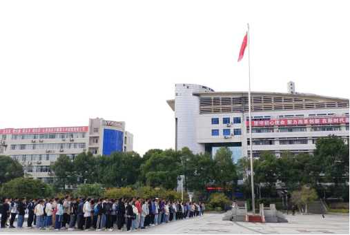 仪式伊始,朝阳初升,五星红旗在国歌中冉冉升起,学院师生全体肃立,向国旗行注目礼。