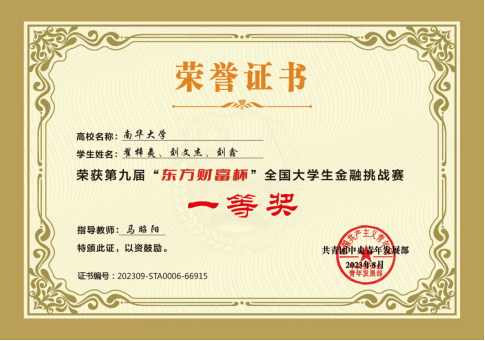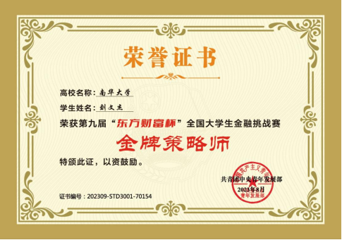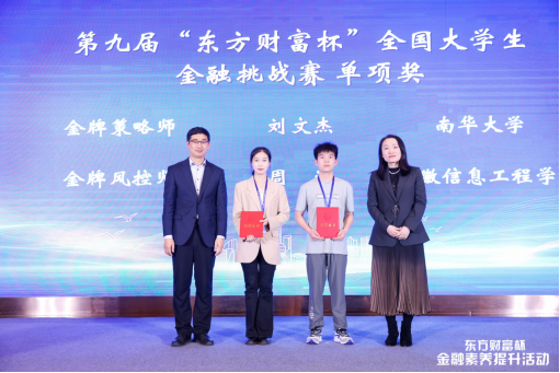 伟德betvlctor1946源于英国翟梓夷、刘文杰、刘鑫荣获第九届“东方财富杯”全国大学生金融挑战赛一等奖(全国第六名),刘文杰荣获单项奖金牌策略师(全国唯一)。刘文杰同学和指导老师马昭阳受邀参加活动总结会。