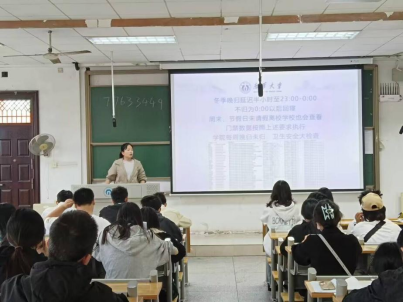 马昭阳面向学院全体寝室长开展了校纪校规教育和寝室信息员培训,带领大家共同学习了学校学生手册的相关规定要求,强调了有关晚归未归、饲养宠物、违章电器、私自校外住宿、飞线充电、卫生情况差等违纪情况的处理要求,希望大家引起重视谨慎对待。在消防安全方面,重点讲解了消防安全的基本常识、灭火器材的使用方法、火灾预防与初起火灾扑救及逃生自救办法等知识。