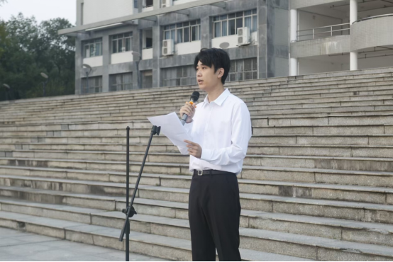 伟德bv1946官网学生代表张承霖在进行国旗下讲话,在这个充满朝气与活力的清晨,张承霖同学向大家发出了号召:在新的征程上,当代中国青年肩负着伟大的使命,亦大有可为,要将前途命运和祖国的发展紧密的联系在一起,不负伟大时代,让奋斗成为青春亮丽的底色!