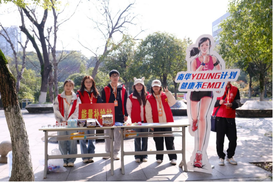 赛道途经图书馆、南华楼等标志性景观,沿途设置“能量补给站”、志愿者挥舞彩旗助威,校园广播同步播放励志音乐,形成一道灵动的青春风景线。