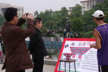 经过前期紧张、有序的一系列准备工作,活动于2:30正式拉开帷幕。首先,化工学院青年志愿者分队负责人宣读此次活动的目的及具体工作部署。随即,青志队员分成两组,一组负责展板的讲解和传单的发放工作;另一组负责有奖灯谜竞猜现场接待工作。此次活动共展出12块展板,12个会馆模型,每块展板上不仅有会馆的精美宣传画,还配有文字解说,每个模型将会馆抽象具体化,给观众带来很强的视觉冲击;而灯谜区则设置了许多有关世博的小问题,回答正确就有精致礼品相送。整个活动一直持续到下午五点,不仅吸引了许多在校大学生,还吸引了大量小区居民驻足观看,加上志愿者们的悉心讲解,使得活动现场气氛热闹而不失和谐。