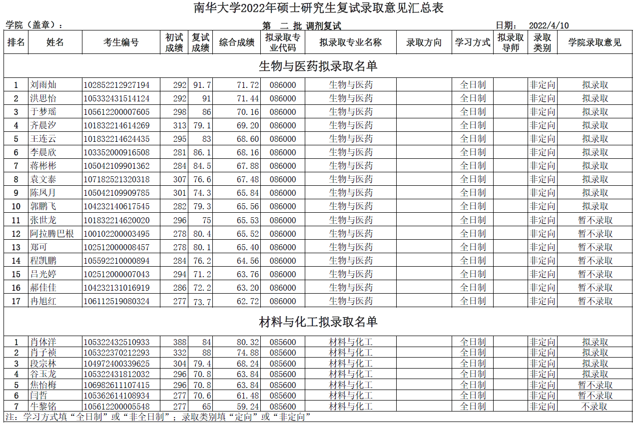 鉴于考生吴璐璐(102512000007064)王云龙(105042109909784) 钱基君(105582290101163)王梦佳(104252540004018)丁晨麓(103582210001593)李大康(105322431812014) 任远航(102462330712574)放弃录取名额,按照学校及伟德研究生招生工作的复试方案,根据2022年4月10日的复试成绩排名,现公布最终拟录取名单如下。对复试成绩及上述同学的建议录取有异议,请以书面形式于2022年4月16日前向学院反映。反映情况要实事求是,具体真实,署真实姓名,以便调查核实。电话:0734-8282375,联系人:王老师。