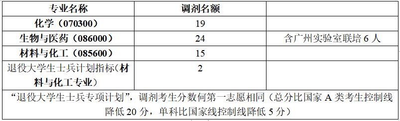 3、调入专业与第一志愿报考专业相同或相近,应在同一学科门类范围内;材料与化工(0856)专业和生物与医药(0860)接收跨学科门类调剂,其中材料与化工(0856)接收一志愿报考0703化学专业考生调剂,生物与医药(0860)接收一志愿报考0703化学专业,1007药学(学术型),1055药学(专业型)