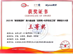 2023年9月15日,由中国化工学会主办,浙江工业大学承办"新安集团杯”第六届全国"互联网+化学反应工程”大学生课模设计大赛落下帷幕,伟德betvlctor1946源于英国化学伟德bv1946官网黄苗苗、谢志文等同学获团队二等奖,罗晴、吕依然等同学获团队三等奖。