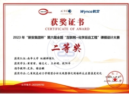 全国“互联网+化学反应工程”大学生课模设计大赛奖状