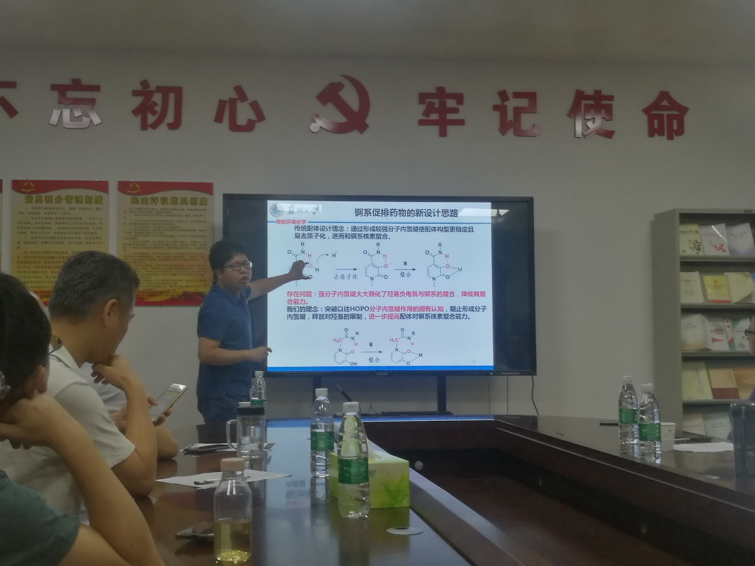 王殳凹教授首先从元素周期表的诞生向在座师生介绍了放射性核素的发展过程以及核素的物理、化学特性,然后介绍核素在军事以及核能发电方面的应用、核燃料的循环过程和核能放射性污染防治基础研究目前存在的难题。接着王殳凹教授介绍了苏州大学放射化学团队近年来在放射性核素固体化学、放射性核素固相吸附材料和辐射探测与辐射防护等方面的研究工作,并详细介绍了其团队在放射性促排药物研发方面的研究进展,使用巧妙设计的促排剂成功对小鼠器官和骨骼内的放射性核素进行了有效促排,取得了非常好的促排效果,通过对比发现,他们设计的促排剂各项指标都优于其他文献报道的促排剂。报告会后,在场的师生踊跃提问与王殳凹教授进行精彩的互动问答,让在座的师生对于放射性核素的发展历程以及核素研究对国家发展的重要性有了更深刻的认识。