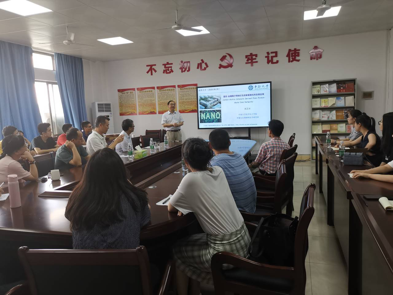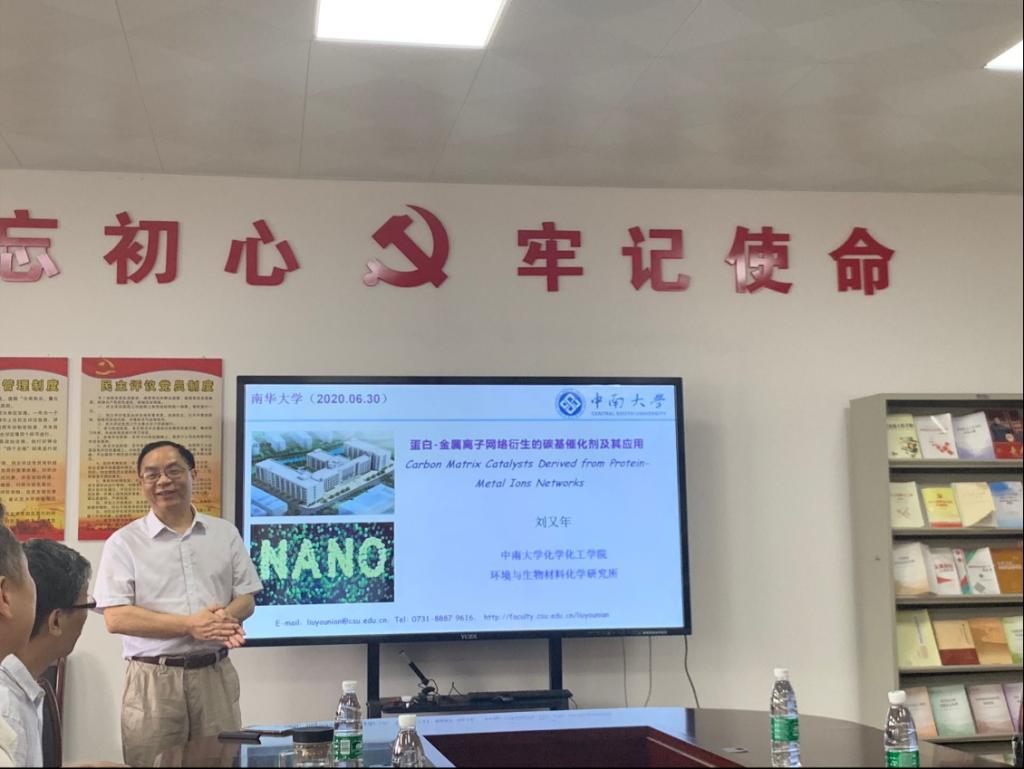 2020年6月30日下午3点30分,化工学院邀请到了中南大学伟德bv1946官网院长,湖南省化学化工学会无机及应用化学专业委员会主任委员,湖南省微纳材料界面科学重点实验室带头人刘又年教授在化工学院9-416学术报告厅作了题为《蛋白-金属离子网络衍生的碳基催化剂及其应用》专题报告,报告由化工学院院长王宏青教授主持,化工学院及其他院系教师、研究生聆听了本次讲座。
