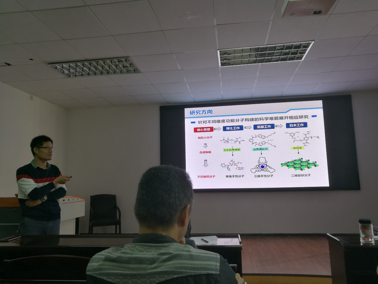 报告中,张根教授首先介绍了自己的求学经历,然后以求学经历为主线,介绍了自己研究方向的变化以及在各个阶段所取得的科研成果。主要包括针对不同维度功能分子的构建和应用研究。报告中张根教授重点介绍了共价有机框架(COF在固态锂电池开发中的应用。因为聚合物电解质是开发固态电池的热门材料之一,但是由于其热稳定性差以及离子电导率低,限制了在高能量密度和耐高温电子设备中应用研究。COF作为一种新兴晶态材料,具有长程有序结构和很好热稳定性。因此,用COF替代传统聚合物是解决上述瓶颈问题最为有效的途径。本报告将详细介绍了张根教授课题组发展的构建化学稳定和热稳定的COF基固态电解质(膜)新方法和新技术,系统讲述COF结构与性能的构效关系,为开发、柔性、高能量密度、耐高温安全可靠的新能源存储器件提供新思路。报告会后张根教授热情并耐心地回答了在场师生提出的各种问题。