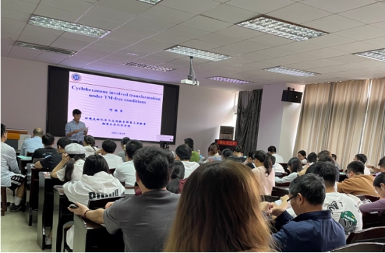 本次报告中,邓教授简单介绍了环己酮在催化剂的作用下脱氢可以产生碳-碳双键,以及题组近年来以环己酮及其衍生物为底物的脱氢芳构化及其进一步转化反应的相关研究,实现了苯并噁唑、N-芳基磺酰胺、2-硫醚基苯酚、3-芳基吲哚、吩噻嗪类等化合物的合成,为一些具有生物、药物活性小分子的合成提供了环境友好的新途径。