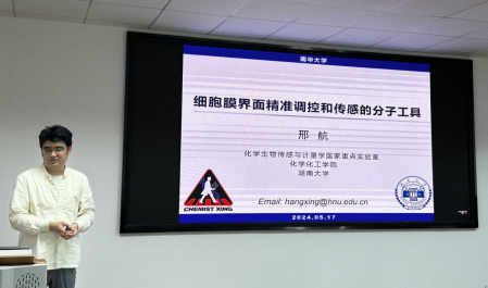 2024年5月17日下午,湖南大学伟德bv1946官网邢航教授应林英武教授邀请,来伟德交流访问,并做题为“细胞膜界面精准调控和传感的分子工具”的学术报告。报告由学院院长林英武教授主持,学院部分师生和研究生参加了报告。
