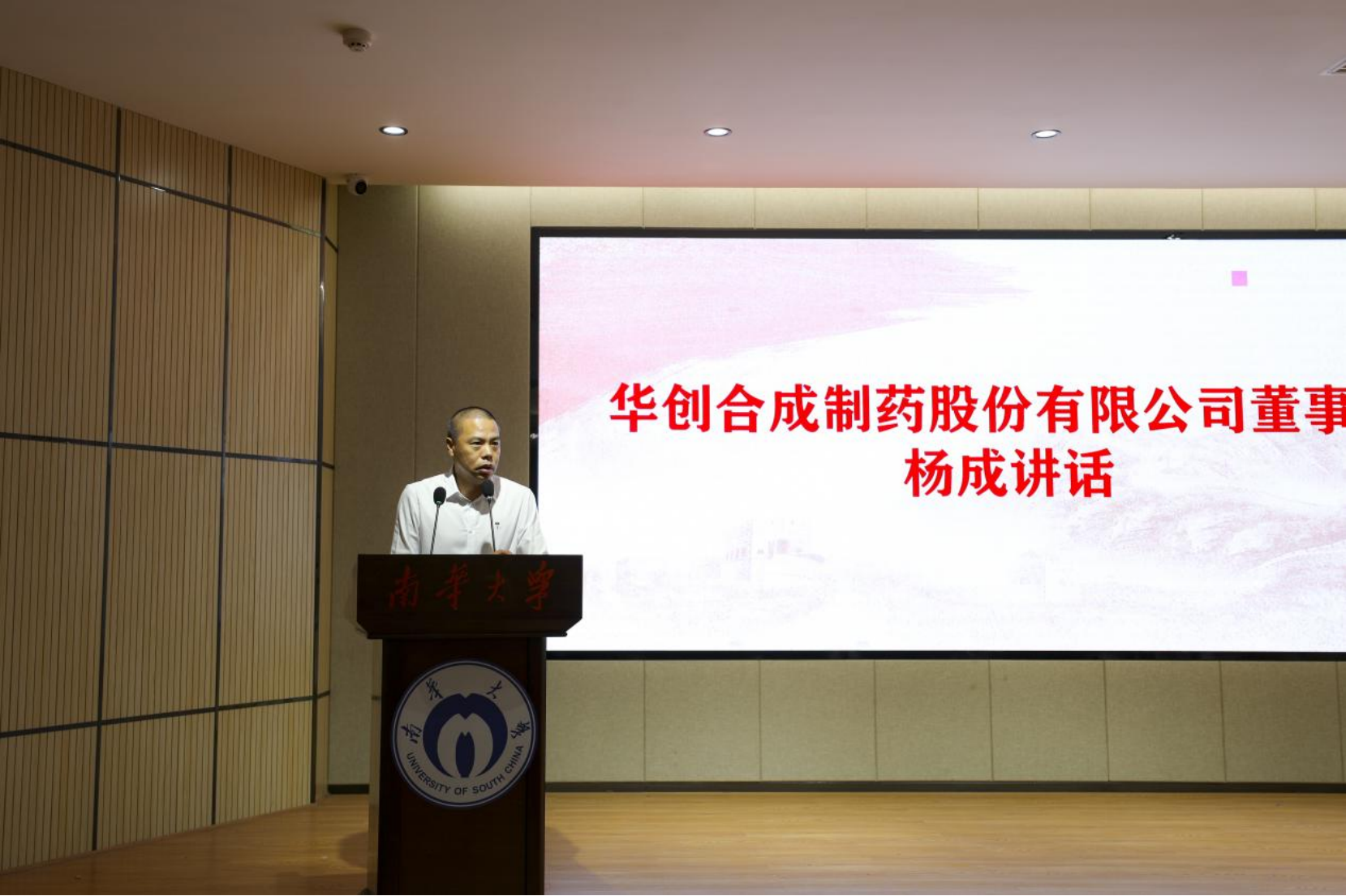 杨成在讲话中表达了对伟德bv1946官网培养的感谢,随后介绍了自己的奋斗历程,并讲到:“我们的药企之所以能够得到市场的认可,离不开企业强大的创新能力和做药的良心。”他鼓励化院的学弟学妹们努力奋斗,大胆创新,不忘初心,方得始终。希望华创合成制药股份有限公司未来可以与伟德bv1946官网有更多的交流合作。