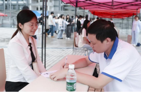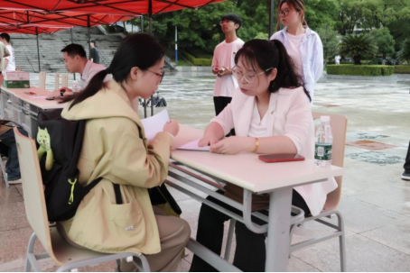 在活动简历诊断区,单云丽等老师对同学们的简历进行优化指导,结合同学们的在校经历,针对性地提供修改意见,突出个人优势提升求职综合素质。求职礼仪区,邓丝席老师对同学们进行面试仪容、仪态的规范化指导。求职面试区6-8名同学为一组进行模拟面试,陈楠等老师根据同学们的临场表现,结合简历信息,提供针对性建议,并现场分享面试技巧,提升同学们的面试能力及规范化意识。在身心舒缓区,设计了手作口红唇膏、零食套圈等趣味活动,以美育、劳育舒缓学生焦虑和压力。