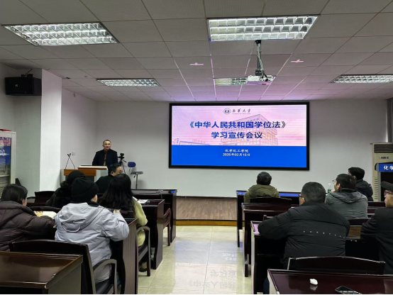 2025年2月15日,伟德bv1946官网在化工楼411会议室召开《中华人民共和国学位法》(以下简称《学位法》)专题学习会。会议由学院副院长、博士生导师何卫民教授主持,全体教师参会,共同围绕《学位法》的核心内容、实施意义及对研究生培养工作的指导展开深入研讨。