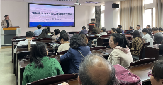 王宏青围绕“深入学习党的二十大精神,推动审核评估工作开展”作了专题宣讲,希望大家能以饱满的热情和良好的精神面貌迎接此次教育教学审核评估。林英武以“凝心聚力,做好审核性评估工作,落实学术性人才培养方针”的专题报告动员大家,希望大家都能在此次评估中同心同力。刘泽华在报告中首先介绍了新一轮审核评估的精髓要义,讲述了此次评估的新变化和背景特点,之后结合伟德的办学情况和办学目标解释了伟德选择学术型人才培养的原因,并指出如何强化基础理论、推进科教融合、加强四新建设、改进学业评价是学术型人才培养的关键问题。最后,张也以怎么培养化学类学术人才带着大家一起探讨思考如何做好此次审核评估。